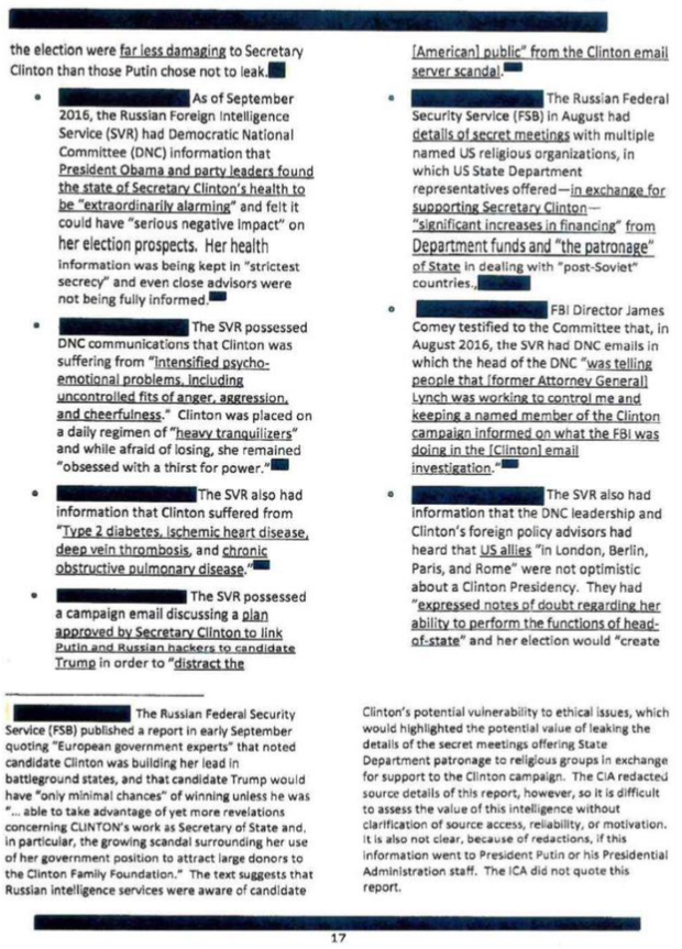 Declassified documents from a September 2020 House Intelligence Committee report, released by DNI Tulsi Gabbard on July 23, 2025, claim Russian intelligence had DNC emails alleging Hillary Clinton suffered “psycho-emotional problems” during the 2016 campaign, including “uncontrolled fits of anger, aggression, and cheerfulness.” She was reportedly on a “daily regimen of heavy tranquilizers” to manage these issues, which President Obama’s team deemed “extraordinarily alarming” but kept secret.